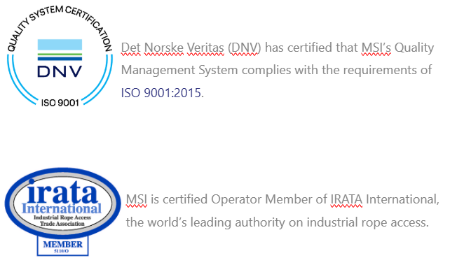 MSI is accredited to ISO 9001 and our worldwide activities are conducted in compliance with all relevant legislation and applicable requirements in the regions we operate.